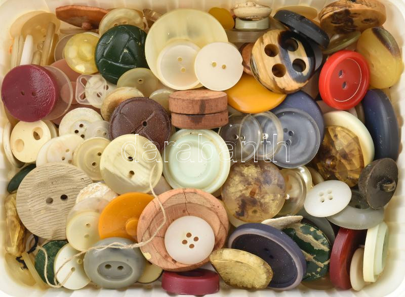 Egy doboznyi vegyes gomb, kb. 200 db https://www.darabanth.com/hu/445-Gyorsarveres/445.0/Mutargy-papirregiseg-egyeb/Bolhapiac~500014/Egy-doboznyi-vegyes-gomb-kb-200-db~II2937088