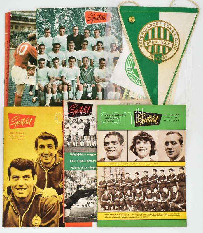 Leírás: Fradi (Ferencváros, FTC) gyűjtemény, különféle relikviák, újságok (közte a Sportélet Albert Flóriánnal kapcsolatos számai)