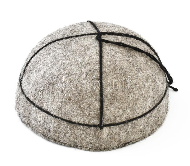 Leírás: Pakol. Afgán sapka kemény gyapjúból, hímzéssel díszítve d: 17 cm