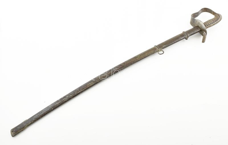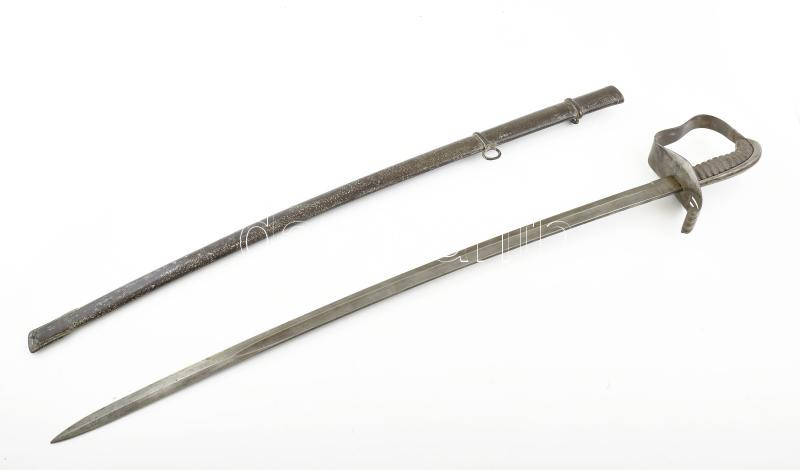Leírás: 1861M gyalogostiszti szablya, jelzett: Weyersberg & Stamm Solingen, hüvellyel, a szablya és a hüvely is lakkal lekezelve, h: 90 cm