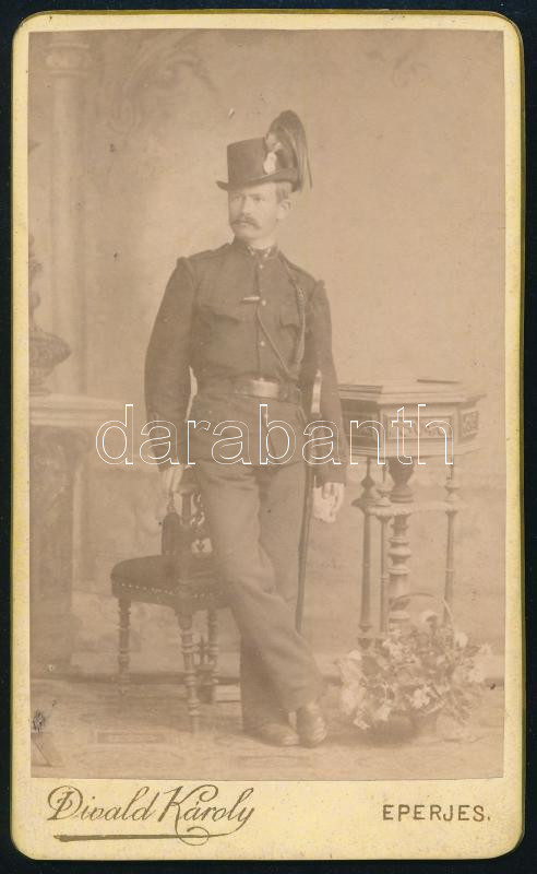 Leírás: cca 1890 Csendőr egyenruhában, keményhátú fotó Divald Károly eperjesi műterméből, 10,5×6,5 cm