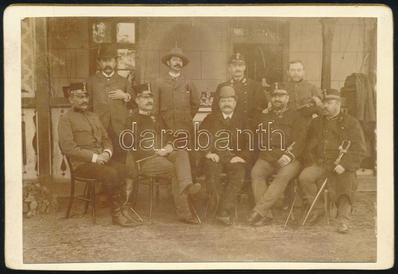 Leírás: cca 1910 Borossebes (Sebis), Erdély, rendőrtisztek és urak csoportképe, keményhátú fotó Kontár fényképészeti műterméből, 11x16 cm