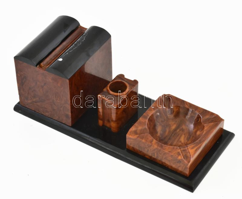 Leírás: Art deco stílusú cigaretta kínáló készlet. Bakelit, minimális sérüléssel 26 cm