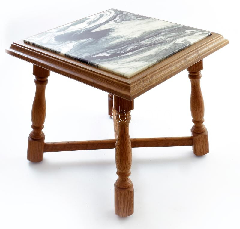 Leírás: Fa posztamens, tetején márvány lappal, kopással, 36x36 cm, m: 33 m