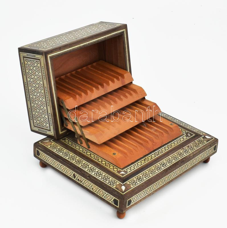 Marokkói gyöngyház- és csont berakásos egzotikus fa, zenélő szerkezete... https://www.darabanth.com/hu/445-Gyorsarveres/445.0/Mutargy-papirregiseg-egyeb/Mutargyak-antikvitas~500008/Marokkoi-gyongyhaz-es-csont-berakasos-egzotikus-fa-zenelo-szerkezetes-cigarettakinalo-j~II2945405