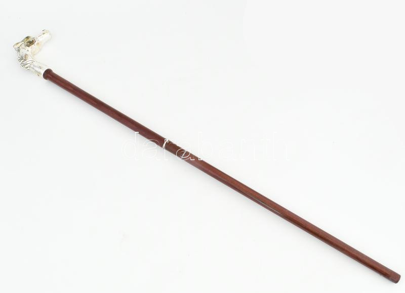 Leírás: Olasz laminált ezüsttel bevont lófej figurális sétabot. Kopással, jelzéssel, h: 93 cm