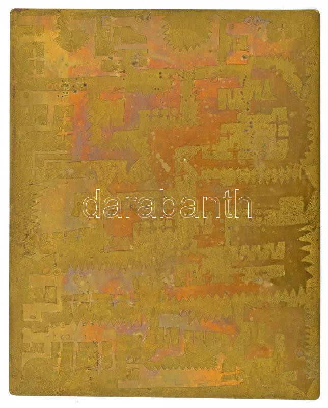 Rézkarc nyomódúc, absztrakt kompozíció, jelzés nélkül, XX. sz. második... https://www.darabanth.com/hu/445-Gyorsarveres/445.0/Mutargy-papirregiseg-egyeb/Mutargyak-antikvitas~500008/Rezkarc-nyomoduc-absztrakt-kompozicio-jelzes-nelkul-XX-sz-masodik-fele-kopott-15x18-~II2939611