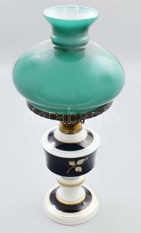 Leírás: Wallendorf petróleumlámpa, porcelán, kétrétegű üveg búrával, hibátlan m: 49 cm