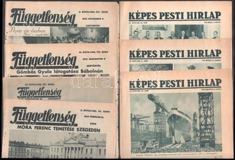 Leírás: 1934-1938 A Függetlenség című újság 4 db száma + 3 db Képes Pesti Hírlap, közte Móra Ferenc temetése Szegeden