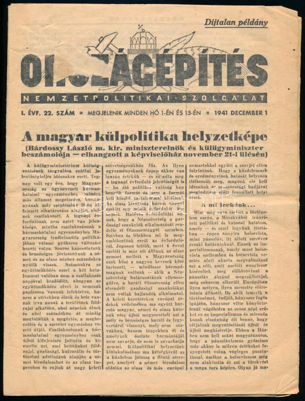 1941 Országépítés I. évfolyam 22. szám, 16p https://www.darabanth.com/hu/445-Gyorsarveres/445.0/Mutargy-papirregiseg-egyeb/Nyomtatvanyok~1500005/1941-Orszagepites-I-evfolyam-22-szam-16p~II2938079