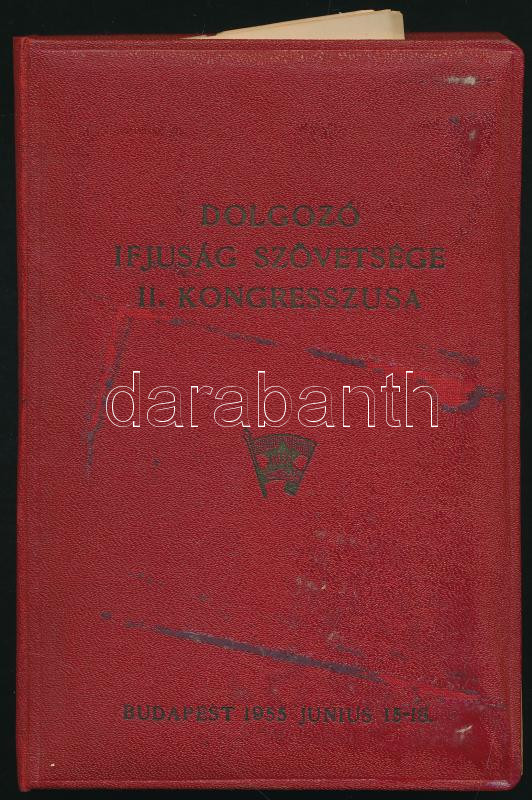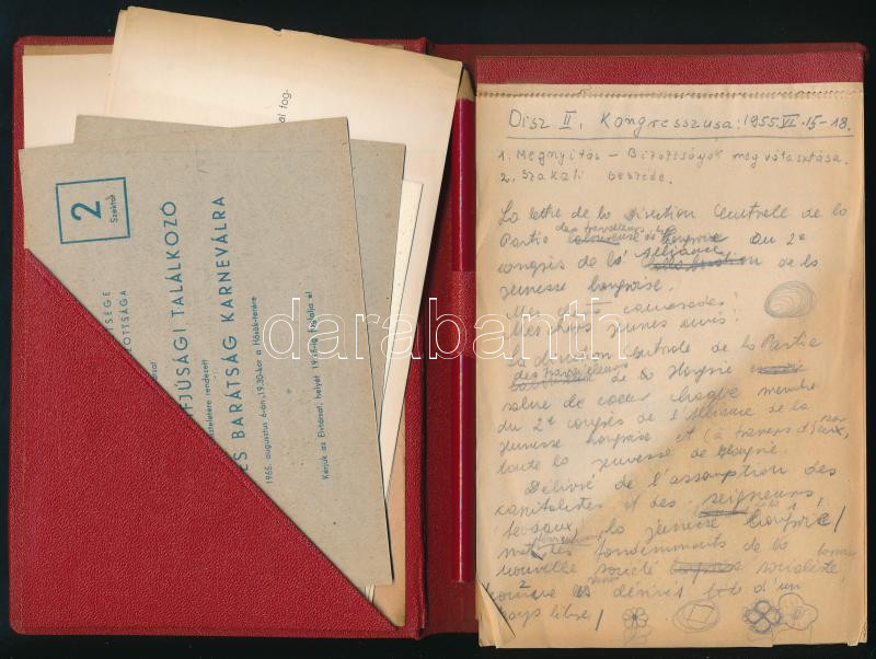1955 A DISZ - Dolgozók Ifjúsági Szövetsége II. kongresszusának anyagai: meghívók, napirend, kézzel írt jegyzetek márkázott jegyzettömbben + egy korábbi fotó