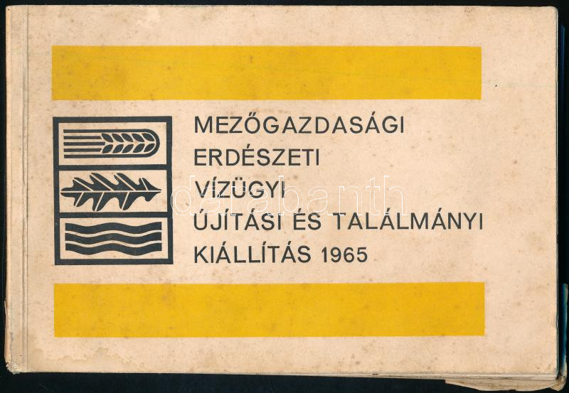 1965 MezÅ‘gazdasági, erdészeti, vÃzügyi, újÃtási és találmányi kiállÃtás. Fekete-fehér képekkel illusztrált katalógus. Kiadói papÃrkötés, foltos borÃtóval, kissé dohos, az elsÅ‘ két lap hiányzik, 115 p.