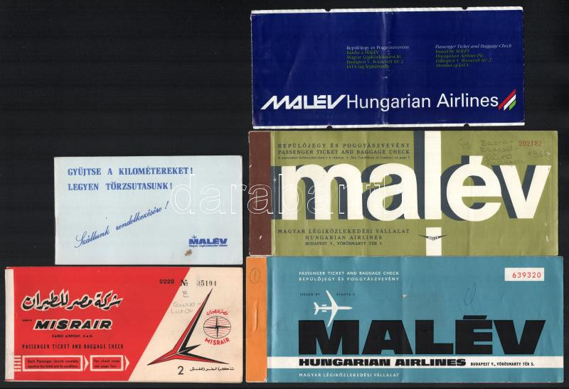 Leírás: Vegyes repülőjegy tétel, közte több MALÉV, 5 db