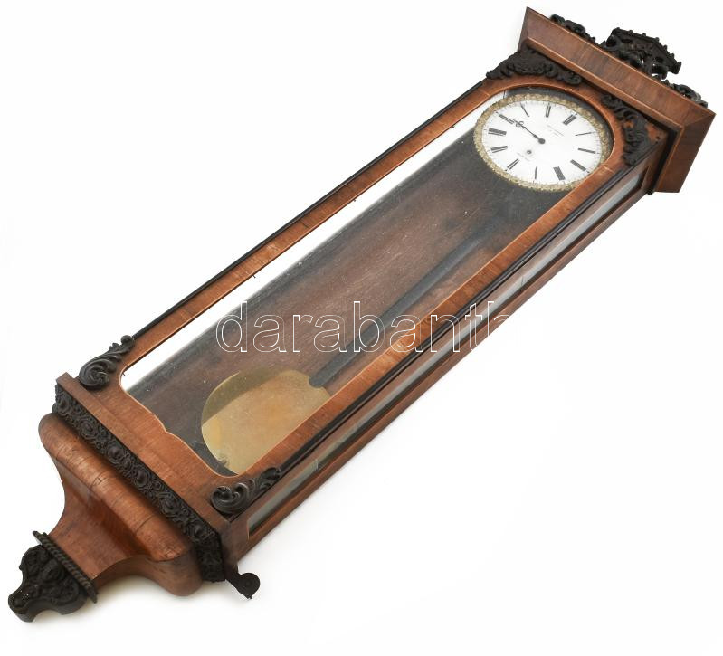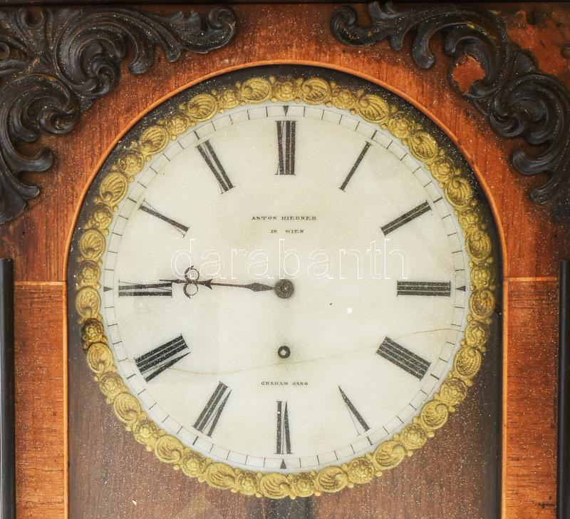 19. sz. vége, Anton Hiebner Bécs falióra, szép állapotban, kulccsal, 1 súllyal, sérült üveggel, sérült számlappal, 118x32x15 cm CSAK SZEMÉLYES ÁTVÉTEL, NEM POSTÁZZUK! / ONLY PERSONAL COLLECTION!