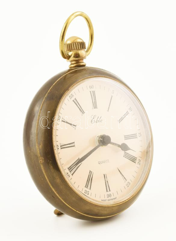 Leírás: Eble rézházas asztali kvarcóra, elem nélkül, nincs kipróbálva, m: 10 cm