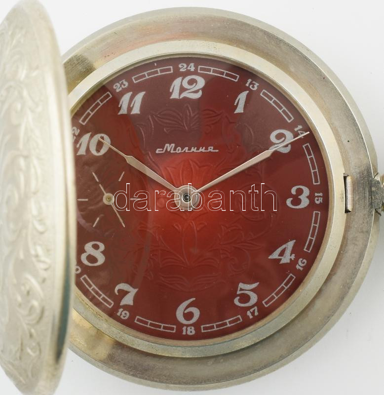 Molnija szovjet fémtokos zsebóra, másodpercmutatós, működő, jó állapot... https://www.darabanth.com/hu/445-Gyorsarveres/445.0/Mutargy-papirregiseg-egyeb/Orak~500011/Molnija-szovjet-femtokos-zsebora-masodpercmutatos-mukodo-jo-allapotban-d-42-mm-Fem-lC3~II2935577