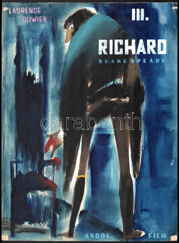 Rau Tibor (1934-2000): III. Richard (filmplakát terv). Főszereplő: Laurence Olivier. Tempera, papír. Jelzett. Lapszéli kisebb sérülésekkel. 40,5x30 cm.