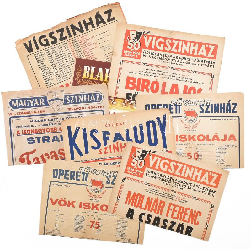 cca 1940-1948 10 db színházi plakát: Nemzeti, Blaha Lujza, Játékszín s... https://www.darabanth.com/hu/445-Gyorsarveres/445.0/Mutargy-papirregiseg-egyeb/Plakat~1500006/cca-1940-1948-10-db-szinhazi-plakat-Nemzeti-Blaha-Lujza-Jatekszin-stb-29x42-cm~II2937517