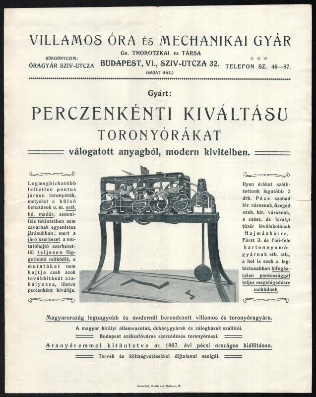 1907 Villamos óra és mechanikai gyár toronyóra reklám képpel, egy lap ... https://www.darabanth.com/hu/445-Gyorsarveres/445.0/Mutargy-papirregiseg-egyeb/Reklam~500024/1907-Villamos-ora-es-mechanikai-gyar-toronyora-reklam-keppel-egy-lap-plus-Stephan-Adolf-permete~II2941429