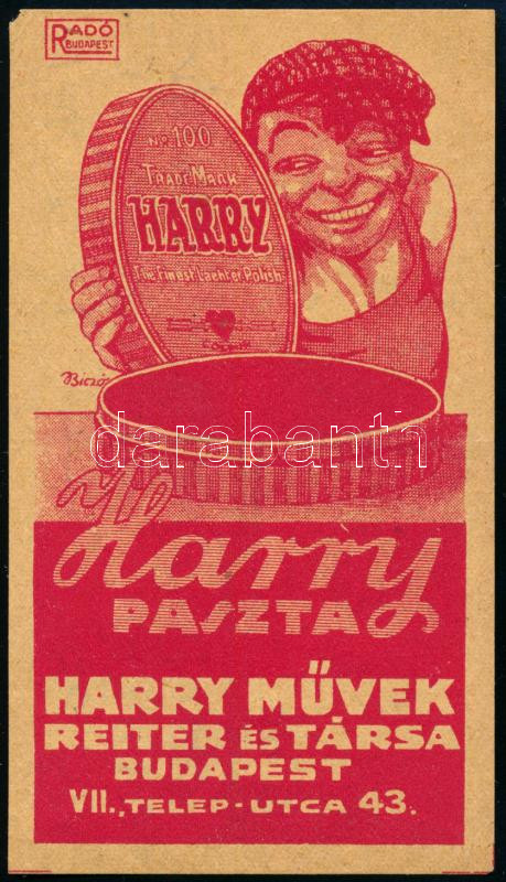Harry paszta, Harry Művek: Reiter és Társa, számolócédula. https://www.darabanth.com/hu/445-Gyorsarveres/445.0/Mutargy-papirregiseg-egyeb/Reklam~500024/Harry-paszta-Harry-Muvek-Reiter-es-Tarsa-szamolocedula~II2942671