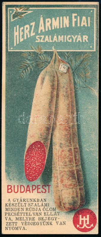 Herz Ármin Fiai Szalámigyár Budapest számolócédula https://www.darabanth.com/hu/445-Gyorsarveres/445.0/Mutargy-papirregiseg-egyeb/Reklam~500024/Herz-Armin-Fiai-Szalamigyar-Budapest-szamolocedula~II2943053