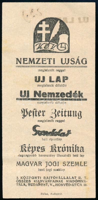 Különféle újságok megjelenési idejéről tájékoztató számolócédula. https://www.darabanth.com/hu/445-Gyorsarveres/445.0/Mutargy-papirregiseg-egyeb/Reklam~500024/Kulonfele-ujsagok-megjelenesi-idejerol-tajekoztato-szamolocedula~II2942684