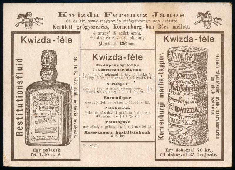 Leírás: Kwizda Ferenc János - Kwizda-féle erőtápanyagok litho reklámlap
