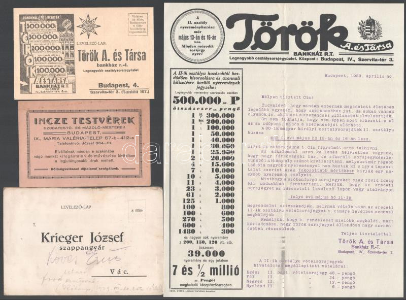 Vegyes reklámnyomtatványok (Krieger József szappangyár, Incze Testvére... https://www.darabanth.com/hu/445-Gyorsarveres/445.0/Mutargy-papirregiseg-egyeb/Reklam~500024/Vegyes-reklamnyomtatvanyok-Krieger-Jozsef-szappangyar-Incze-Testverek-szobafesto-stb~II2937959