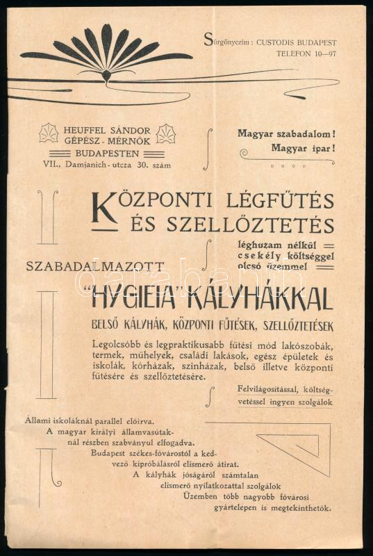 Leírás: cca 1900 Központi légfűtés és szellőztetés Hygieia kályhával. Képes katalógus 38 p Hajtva