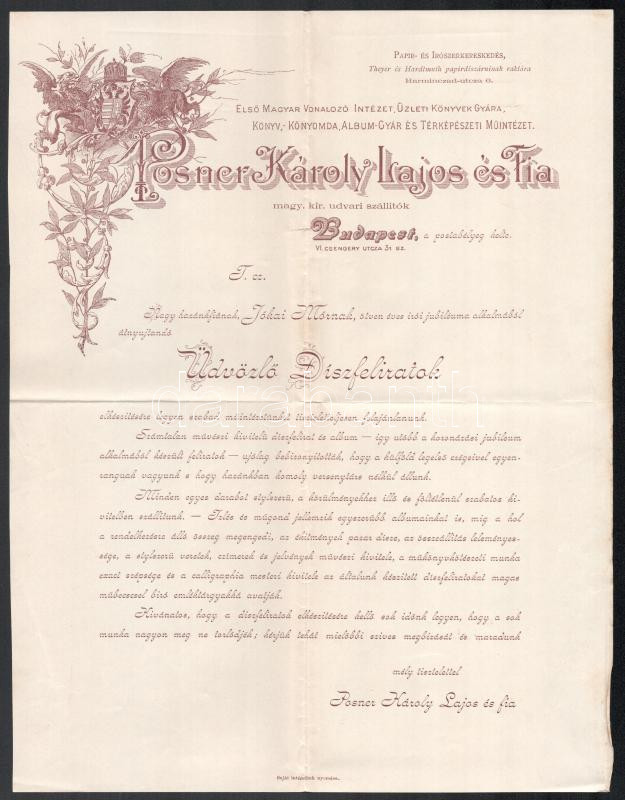 Leírás: cca 1900 Posner Károly Lajos nyomda reklámlevél
