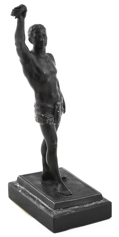 Leírás: Hungária Vívó Club 1912 bronz szobor, márvány talapzaton, m: 23 cm