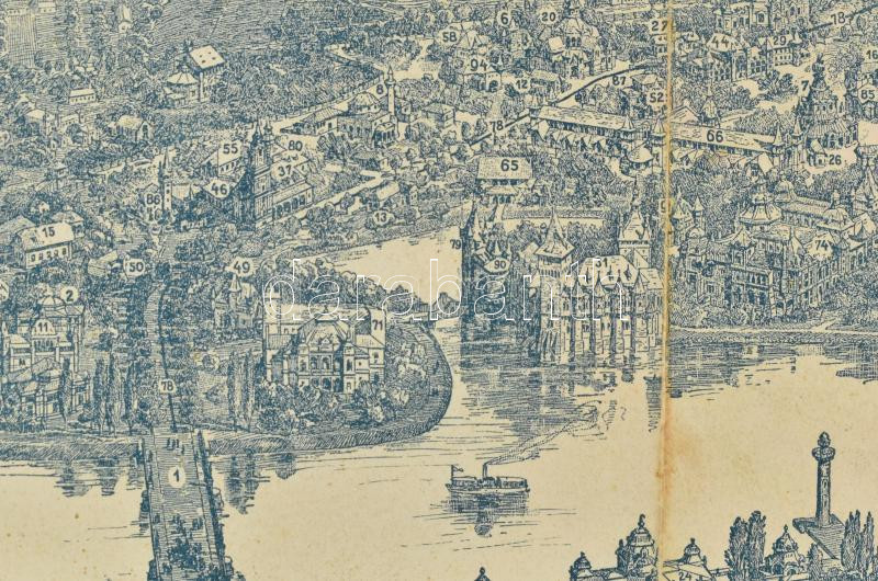 Leírás: 1896 Budapest tervrajza, hátoldalon az Ezredéves Országos Kiállítás Látképével, kis szakadásokkal, 48×60 cm