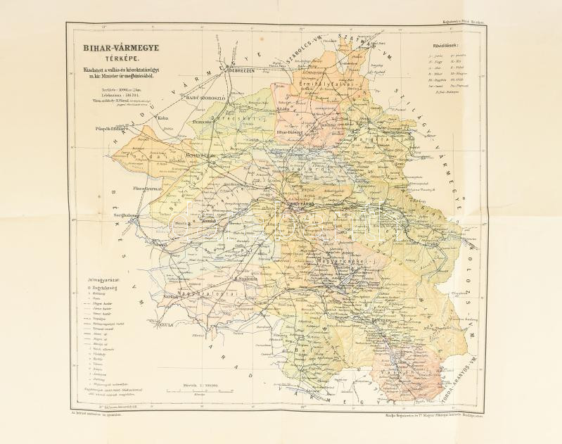 cca 1900 Bihar vármegye térképe, In: Kogutowicz Manó: Kis atlasz, 1 : 500.000, Bp., Kogutowicz és Tsa Magyar Földrajzi Intézete, kis lapszéli szakadásokkal, lapméret: 54x34,5 cm