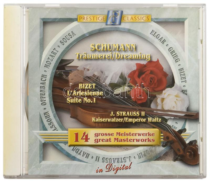 14 great Masterworks. Elgar, Grieg, Bizet, Beethoven, Brahms, Chopin, Johann Strauss, Haydn, Mendelssohn, Offenbach, Schumann, Mozart, Sousa. CD, Prestige Classics, Csehország, 1994. VG+
