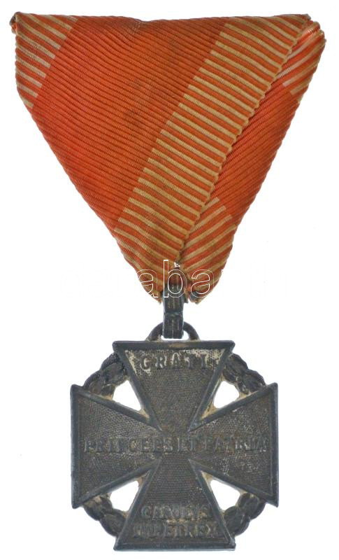 Leírás: 1916. "Károly-csapatkereszt" Zn kitüntetés mellszalagon T:XF patina / Hungary 1916. "Charles Troop Cross" Zn decoration with original ribbon C:XF patina NMK 295.