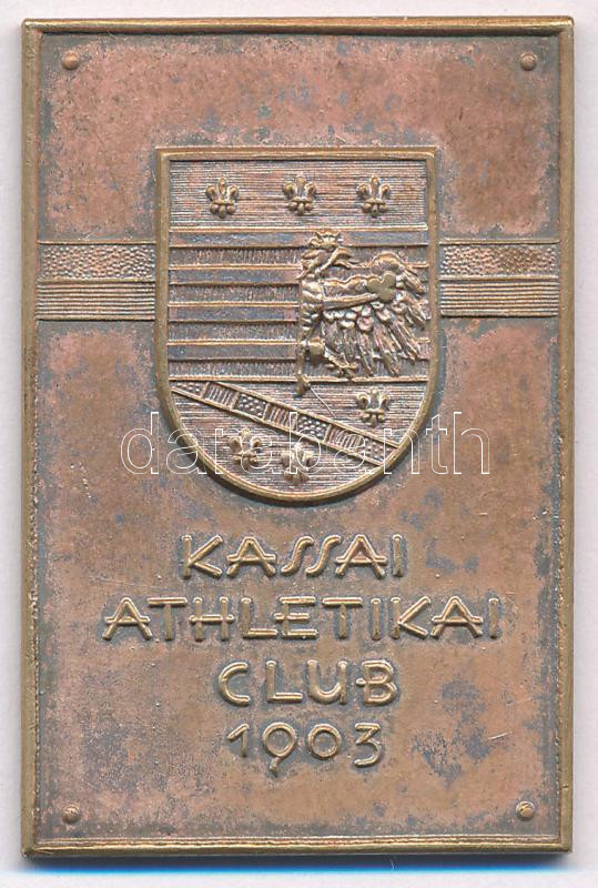 Leírás: 1932. "Kassai Athletikai Klub 1903" bronz plakett gravírozással (45x30mm) T:XF felületi karc