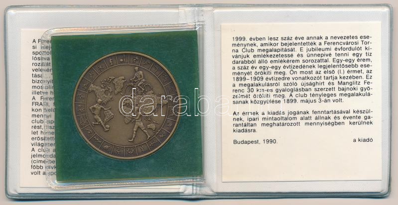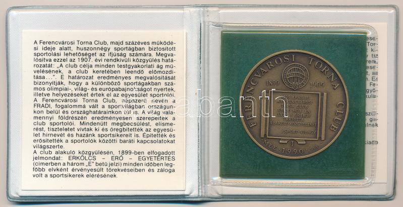 Leírás: Bognár György (1944-) 1990. "MÉE - Ferencvárosi Torna Club FTC I. - 1899-1909" kétoldalas bronz emlékérem műbőr tokban (42,5mm) T:UNC Adamo FTC1