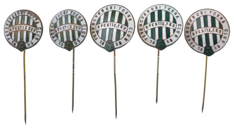 Leírás: DN "Ferencvárosi Torna Club" zománcozott bronz Fradi/FTC-jelvény (5db) T:AU,XF egyiken zománchiba