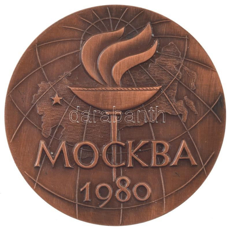 Szovjetunió 1980. "Moszkvai Olimpia" kétoldalas bronz emlékérem eredeti, de sérült műanyag tokban (60mm) T:AU