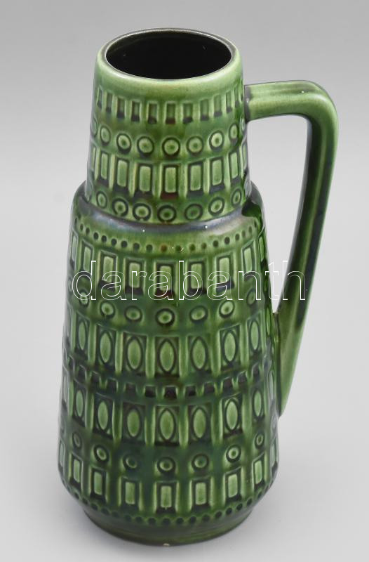 Leírás: Német iparművész geometrikus mintás díszváza mázas kerámia . Kézzel festett, jelzett, hibátlan 26 cm