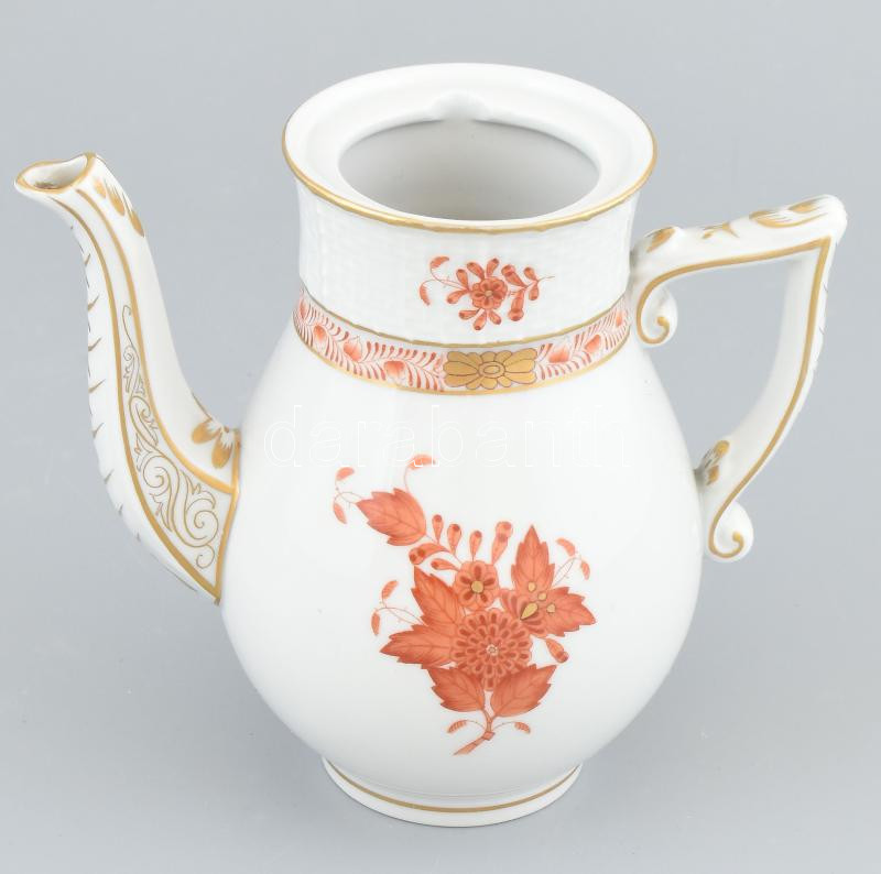 Herendi Apponyi narancs mintás kávés kanna fedél nélkül. Kézzel festet... https://www.darabanth.com/hu/445-Gyorsarveres/445.0/Porcelan-keramia-uveg/Porcelan~500006/Herendi-Apponyi-narancs-mintas-kaves-kanna-fedel-nelkul-Kezzel-festett-jelzett-minimalis-~II2945714