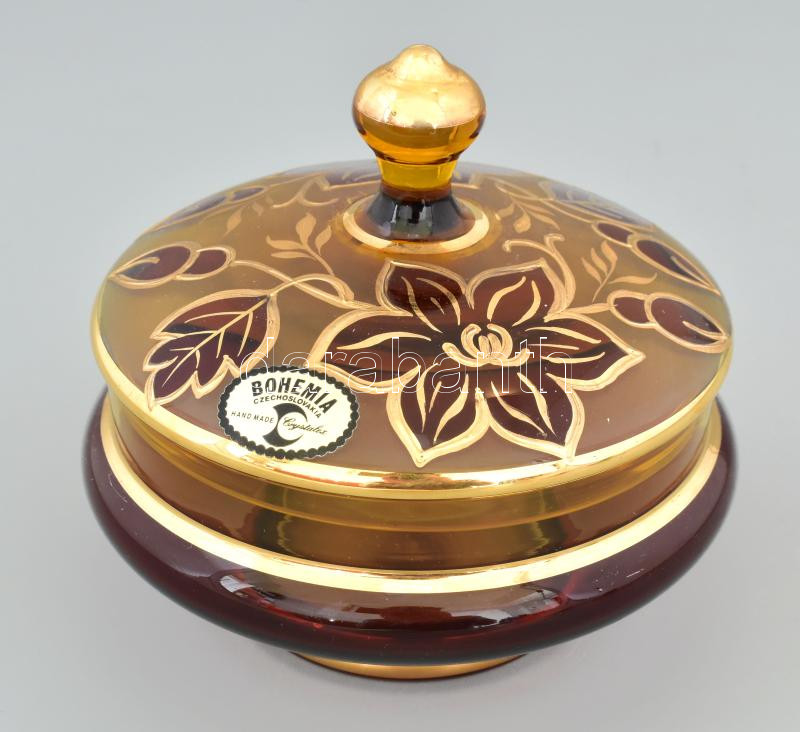 Bohemia bonbonier, anyagában színezett, festett és savmaratott fedővel... https://www.darabanth.com/hu/445-Gyorsarveres/445.0/Porcelan-keramia-uveg/Uvegtargyak~500007/Bohemia-bonbonier-anyagaban-szinezett-festett-es-savmaratott-fedovel-cimkevel-jelzett-kopC3~II2905061