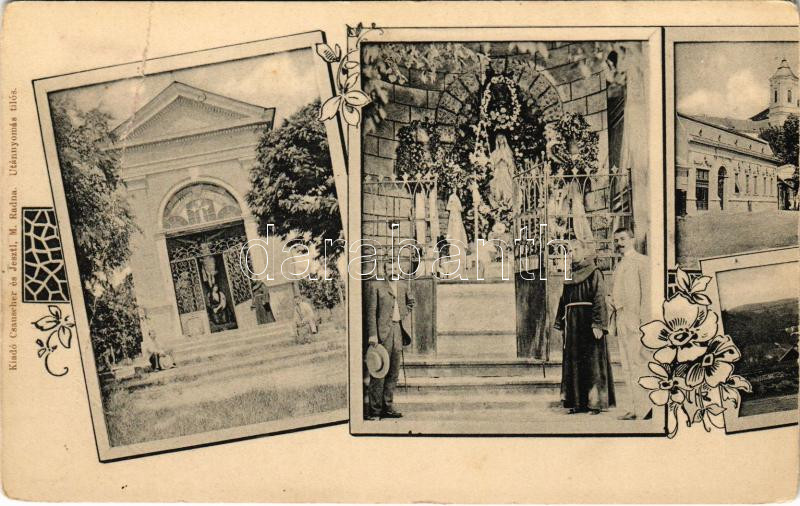 ~1900 Máriaradna, Mária-Radna, Radna (Lippa, Lipova); Kálvária, kápolna, Mária Lourdes. Csauscher és Jesztl kiadása - panorámalap egyik fele / calvary, chapel - one half of a panoramacard