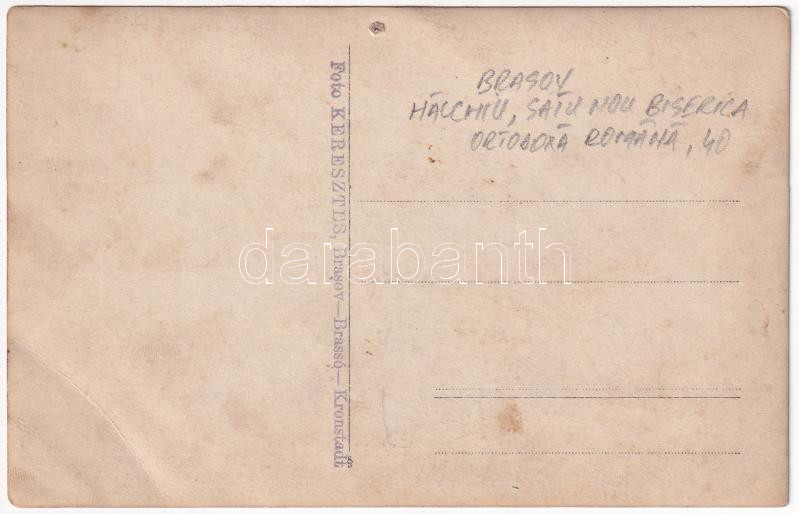 Barcaújfalu, Satu Nou (Holtövény, Halchiu); Biserica ort. rom. / Román ortodox templom / Romanian Orthodox church. Keresztes (Brassó, Brasov) photo (lyuk / pinhole)