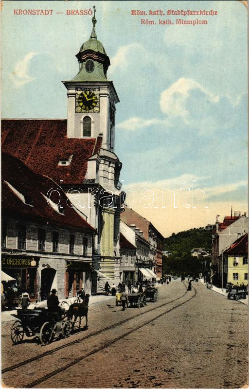 Brassó, Kronstadt, Brasov; Római katolikus templom, Orehowski üzlete. ... https://www.darabanth.com/hu/446-Gyorsarveres/446.0/Kepeslapok/Erdely~2000007/Brasso-Kronstadt-Brasov-Romai-katolikus-templom-Orehowski-uzlete-H-Zeidner-kiadasa-Catho~II2942856