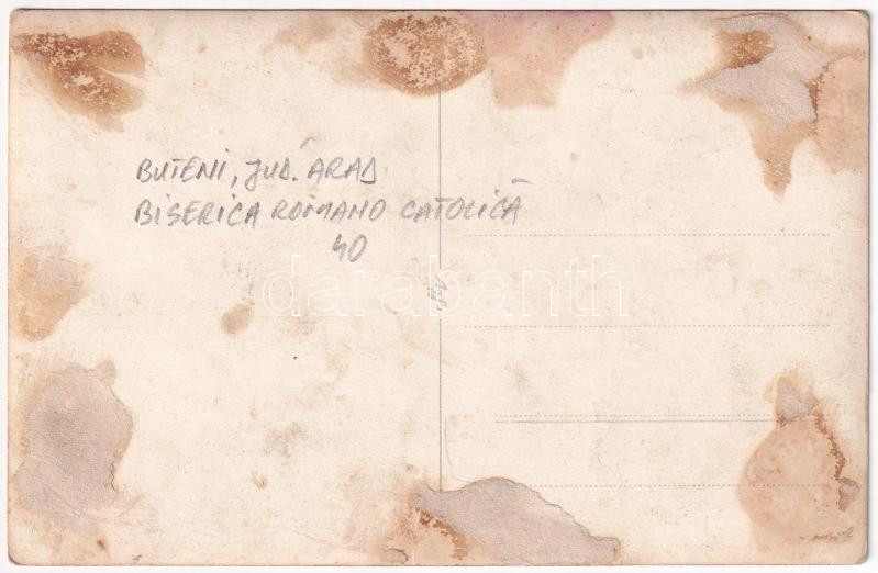 Leírás: Buttyin, Körösbökény, Buteni, Bucin; Római katolikus templom / Biserica catolica / Catholic church. photo (ragasztónyom / glue marks)