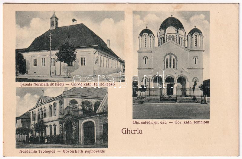 Szamosújvár, Gherla; Scoala Normala de baeti, Bis. catedr. gr. cat., Academia Teologica / Görögkatolikus tanítóképző, papnevelde és templom. Todoran kiadása / Greek Catholic church, teachers' training institute, theological academy (EK)