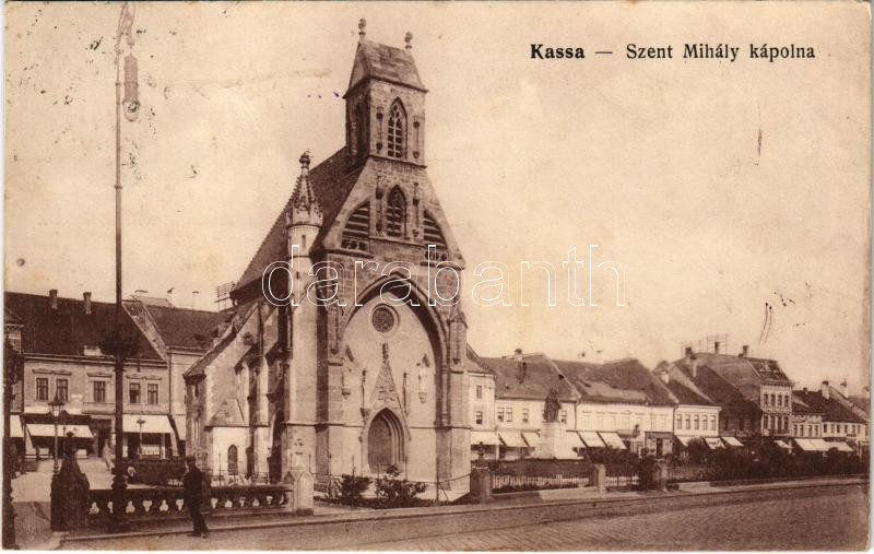 1915 Kassa, Kosice; Szent Mihály kápolna. Vasúti levelezőlapárusítás 1... https://www.darabanth.com/hu/446-Gyorsarveres/446.0/Kepeslapok/Felvidek~2000008/1915-Kassa-Kosice-Szent-Mihaly-kapolna-Vasuti-levelezolaparusitas-1578-chapel-gyurod~II2947253