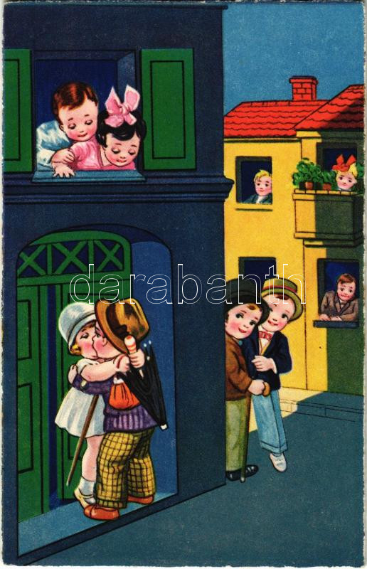 Children art postcard, kissing. Amag 0279. https://www.darabanth.com/hu/446-Gyorsarveres/446.0/Kepeslapok/Gyerek~2000024/Children-art-postcard-kissing-Amag-0279~II2955031