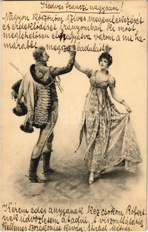 Lady art postcard, romantic couple. M. M. Vienne Nr. 153. https://www.darabanth.com/hu/446-Gyorsarveres/446.0/Kepeslapok/Holgyek~2000028/Lady-art-postcard-romantic-couple-M-M-Vienne-Nr-153~II2954998